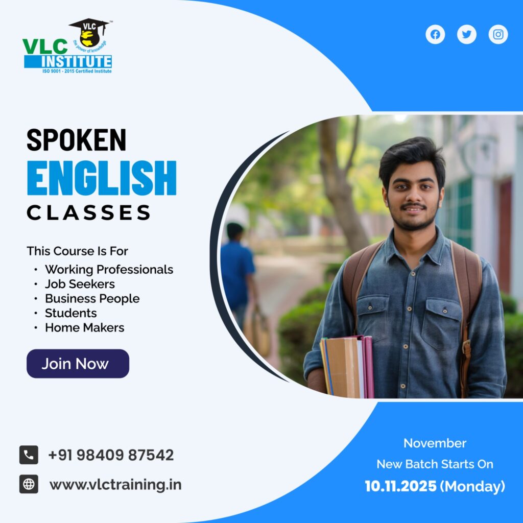 21 Oct English Up Coming English Classes – Spoken English In Tambaram Chennai VLC Institute Tambaram Spoken English Classes, We kindly inform you that the new batches start onNOVEMBER – 2025Timings availableWeek days – 10.11.2025 ( Monday )07 to 09 am, 10 to 12 noon,05 to 07 pm, 07 to 09 pm.Weekend classes also availableSaturday – 05 to 08 pm,Sunday – 8.30 to 11.30 am.Contact : 9840987542 / 7200087542. Contact Us