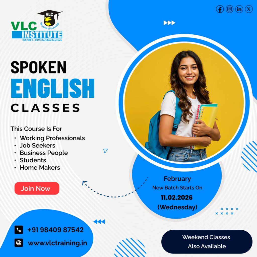 20 Jan English Up Coming English Classes – Spoken English In Tambaram Chennai VLC Institute Tambaram Spoken English Classes, We kindly inform you that the new batches start onFEBRUARY – 2026Timings availableWeek days – 11.02.2026 ( Wednesday )07 to 09 am, 10 to 12 noon,05 to 07 pm, 07 to 09 pm.Weekend classes also availableSaturday – 05 to 08 pm,Sunday – 8.30 to 11.30 am.Contact : 9840987542 / 7200087542. Contact Us